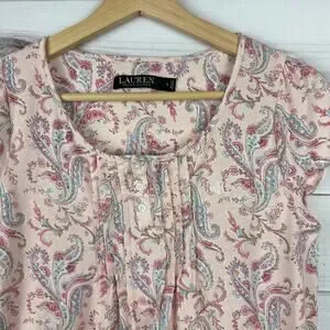 Lauren Ralph Lauren Womens Pink Paisley Ruffled Nightgown Sz Small