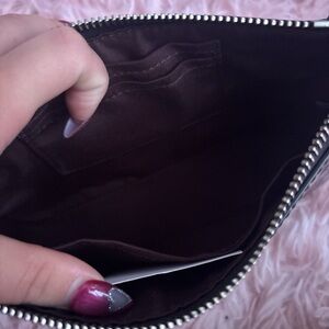 Sleek black croc-embossed design. Features a stylish silver chain. Perfect for chic outings.