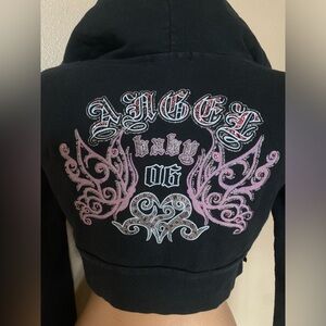In great condition. No size tag but best for a size small. Measurements: pit to pit- 16” flat, length- 13”. So much bling- letters have glitter and rhinestones!! 2006 babies tap in!! :P