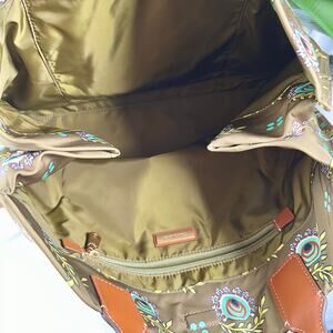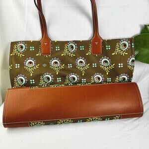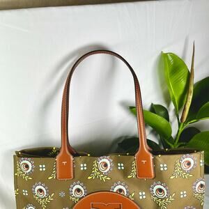 Authentic TORY BURCH Satin/Leather logo large snap magnetic tote