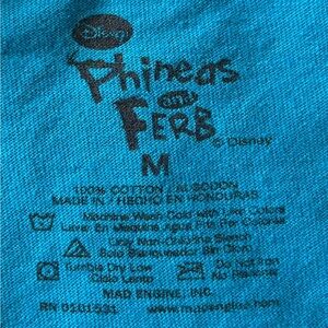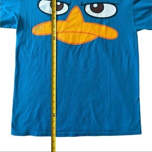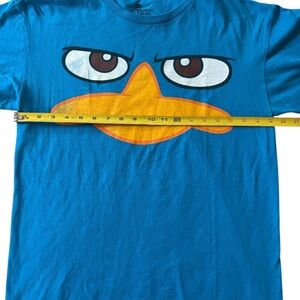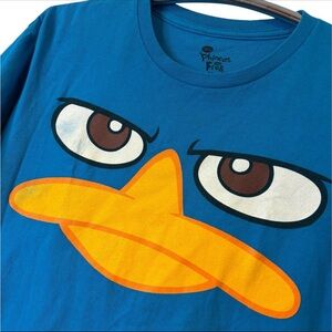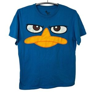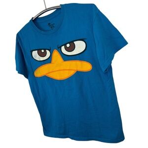 Bold blue Phineas & Ferb Perry the Platypus t-shirt featuring a striking orange beak graphic. Ideal for playful style. Size Medium
