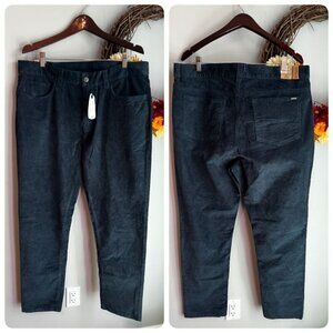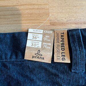 prAna Mens Campfire Cord Slim Fit Pant 36"W / 30"L Navy Blue Tapered Leg