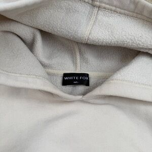 White Fox hoodie in a soft cream sweat fleece with a relaxed fit and cozy fleece interior. Features small “White Fox Vol.3” graphic on the front and a bold oversized graphic across the back. Easy everyday streetwear piece that pairs perfectly with leggings, sweats, or denim.