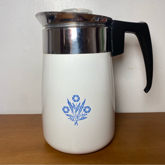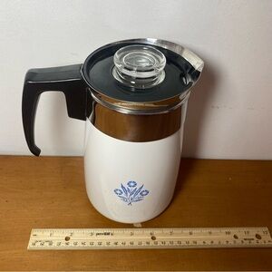 Corelle Ware Blue Cornflower Stove Top Coffee Tea Pot Percolator 6 Cup Vintage