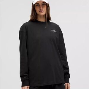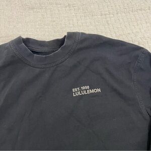 Classic Lululemon heavyweight cotton crewneck long sleeve shirt in black with a minimal “EST. 1998 Lululemon” chest logo. A clean athletic staple perfect for everyday wear or layering.
