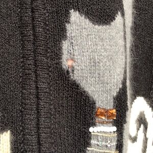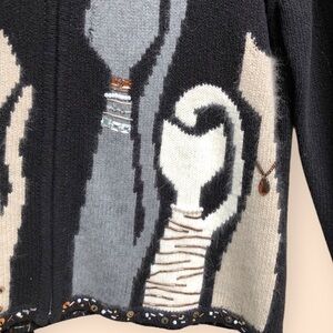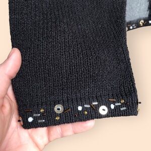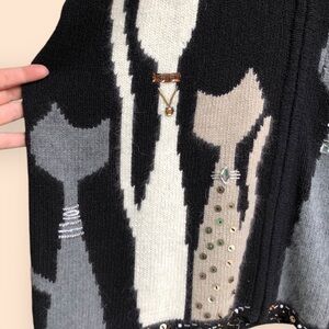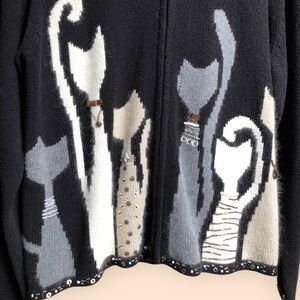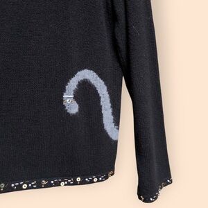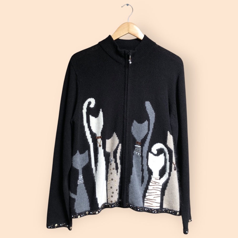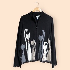 Vintage Y2K Coldwater Creek Black Full Zip Knit Cat Sweater Beaded