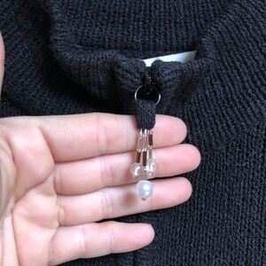 Solid black knit sweater / full zip up the front with beaded zipper pull