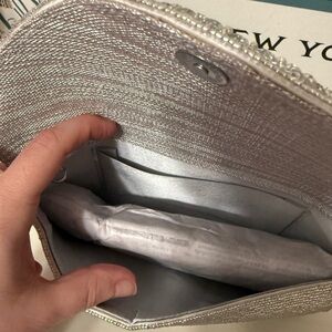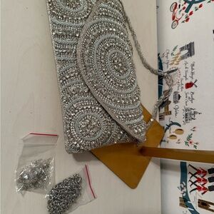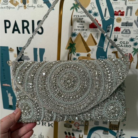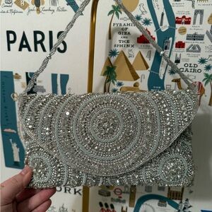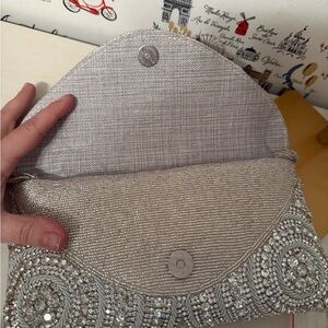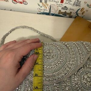 This elegant silver beaded clutch is perfect for any special occasion. Its shimmering design adds a touch of glamour to your outfit.
