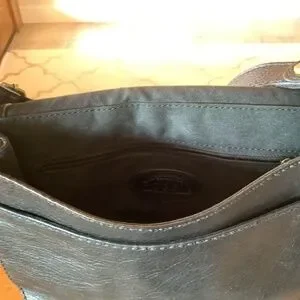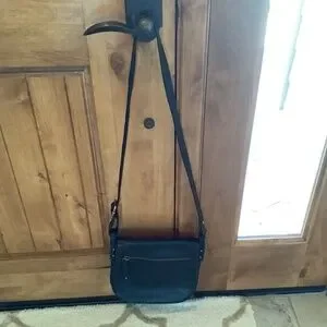 Sleek black leather crossbody with zip front pocket for easy access. Adjustable shoulder strap for comfortable wear. Timeless design that pairs with everyday outfits. Durable hardware and secure zip closure.