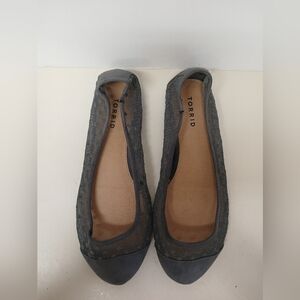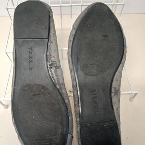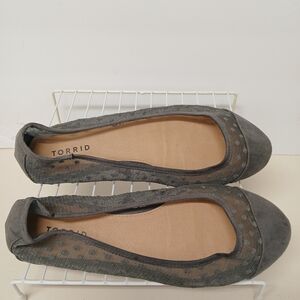 Breathable mesh upper with subtle polka texture. Suede-like pointed toe and trim. Padded insole for everyday comfort. Neutral gray works with many looks.