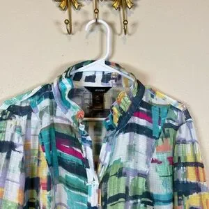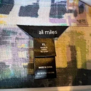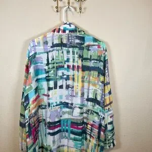 ALI MILES wearable art watercolors unique buttons artsy lightweight crinkle fabric travel office easy to care for country club.