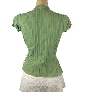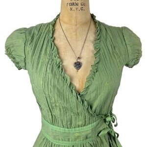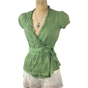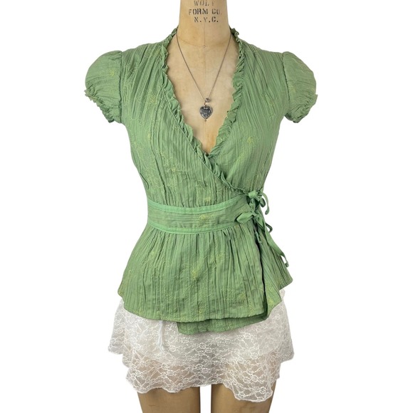 Cottagecore, Fairycore, Boho, Peplum, Wrap Top, Embroidered, Ruffle, Sage Green, Y2K, Romantic, Coquette, Summer, Lightweight, Girly, Vintage Aesthetic