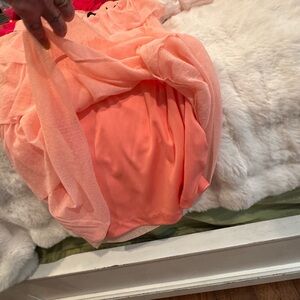 The lightweight textured fabric and adjustable spaghetti straps create an elegant yet playful look perfect for parties, bridal events, date nights, or special occasions. The straps seem to be worn. But still in fair condition.