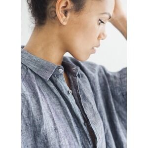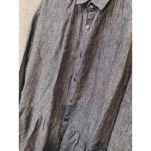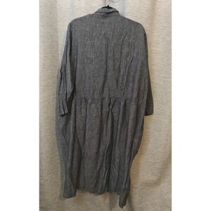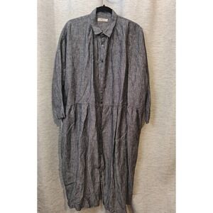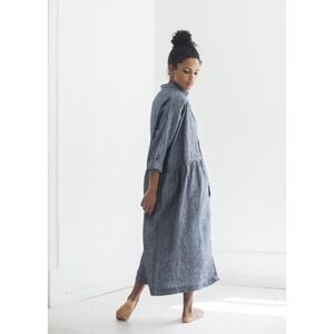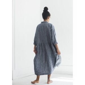 Ichi Antiquites - Shirt Dress in Navy Linen - 100% linen - Oversized dress with hidden side pockets - Drop waist - Button up to collar - One size fits most - Made in Japan