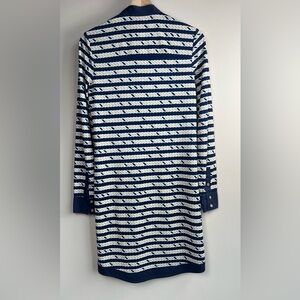 •Style: A long-sleeve knit shirt dress with a midi or knee-length silhouette.