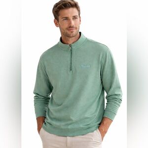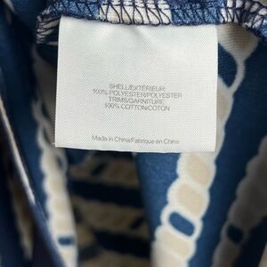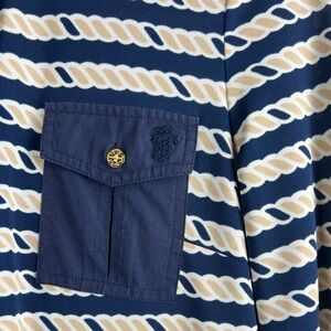 •Features: It includes a half-button front with signature gold logo buttons, a mock neck or collared neckline, and two chest flap pockets.