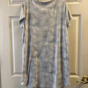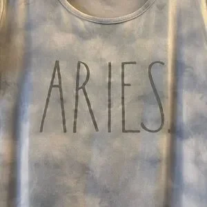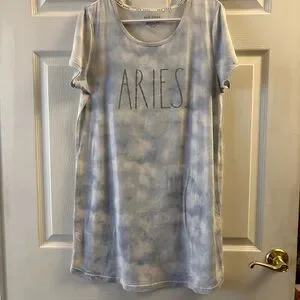 Soft tie-dye sleep tee with large "ARIES" chest print. Lightweight and relaxed fit. Subtle cloud-like blue and gray pattern. Only flaw is a very small spot on the top corner (picture 5). In perfect condition otherwise. Size medium!