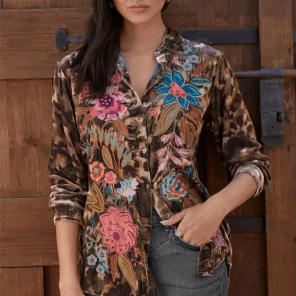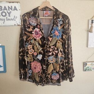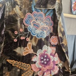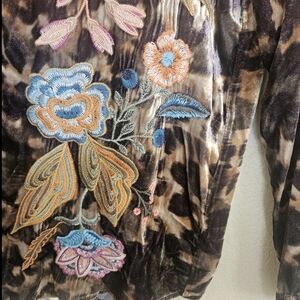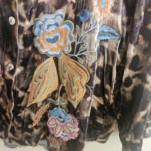A beautiful velvet light animal print embroidered floral classic Johnny Was Bohemian style! oversized fit see Measurements
