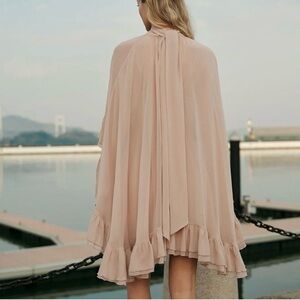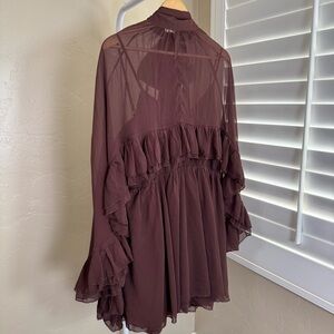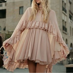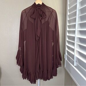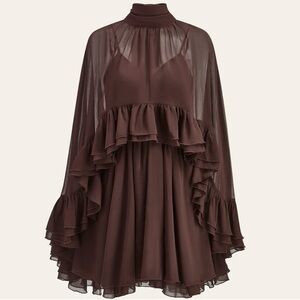 Commense Semi-Sheer Chiffon Ruffle Dress with Outer Cape XL NWT