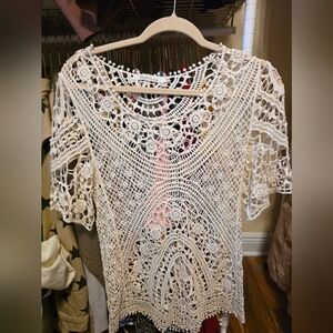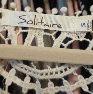 Chic crochet lace top by Solitaire. Features delicate patterns.