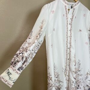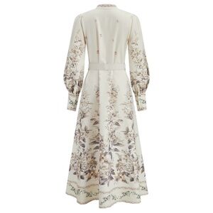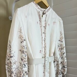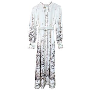Commense Floral Print Stand Collar Belted Midi Dress NWT