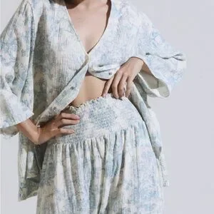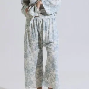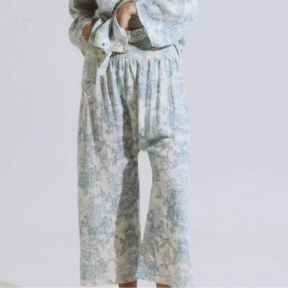 Nothing Fits But Toile Print Muslin Gauze Nursing Pants Wide Leg Light Blue