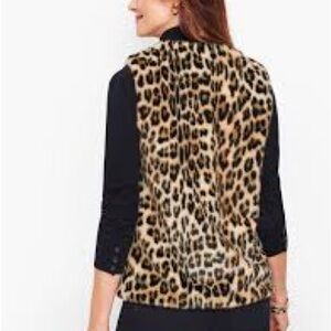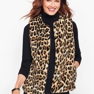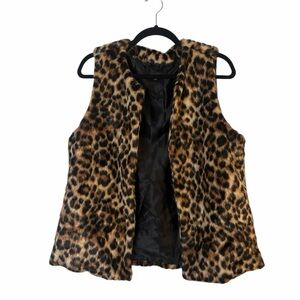 Chic animal print vest. Soft faux fur texture. Ideal for layering.