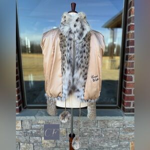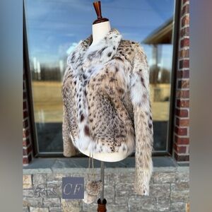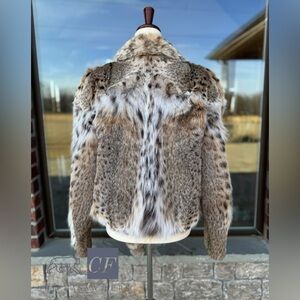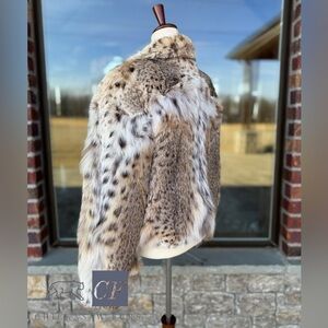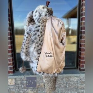 Heavily Spotted Cat Lynx Bomber-Style Jacket with Pom-Pom Sweep Drawstring - Recommended for Unisex Medium-Large