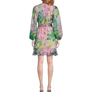 Alex Marie Pink & Green Floral Asymmetrical Wrap Dress Size 16