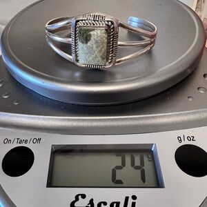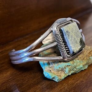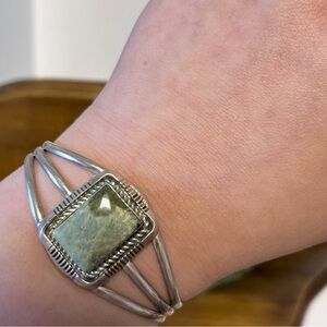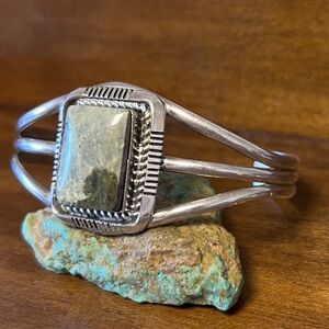 Native American Vintage Serpentine Stone Cuff Bracelet Sterling Silver