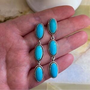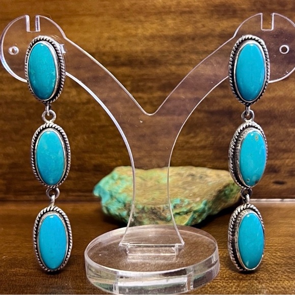 Statement Genuine turquoise earrings with Simple Clean Drop Design easy layering with other Southwestern or Native American jewelry
