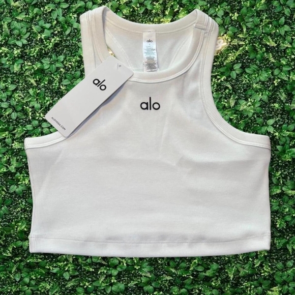 Cropped ribbed tank with a sleek racerback. Soft stretch fabric for movement. Minimal ALO logo at chest. Clean, versatile layer for workouts or casual wear.