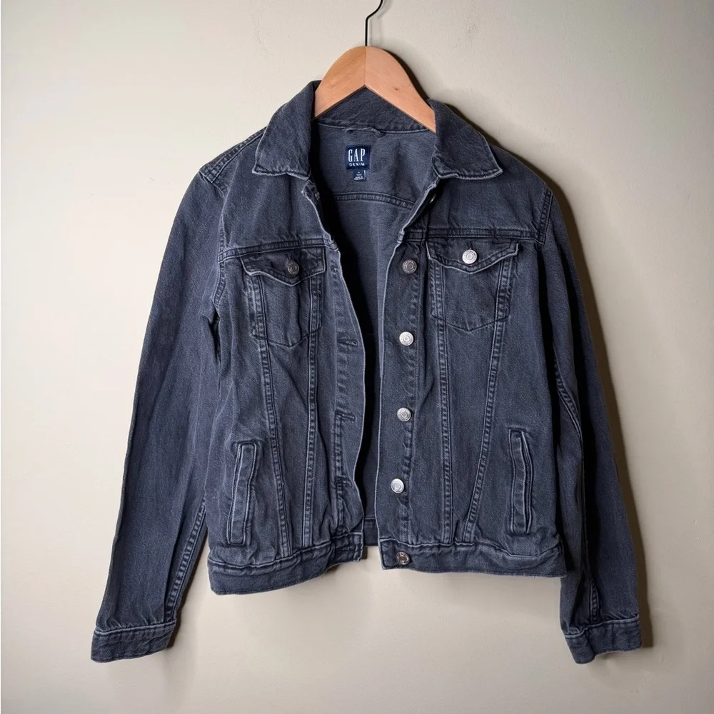 Stylish and versatile, this GAP men's black denim jacket is perfect for any casual outing. Crafted with quality materials, it offers both comfort and durability.