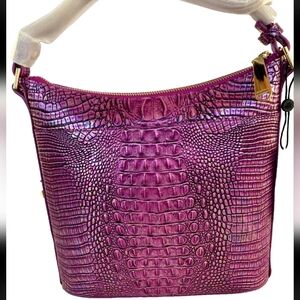 Elevate your style with this stunning purple crocodile embossed bag. Perfect for any occasion, this bag adds a touch of luxury to your ensemble.