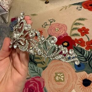 Add a touch of elegance with this stunning silver crystal tiara. Perfect for special occasions.