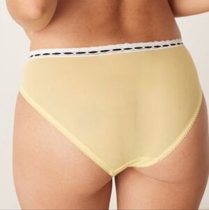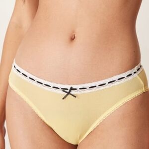Charming yellow panties with delicate lace trim. Features a cute bow accent. Comfortable and stylish.