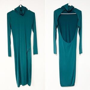 NEW Lovers & Friends Gigi Open Back Cut Out Midi High Neck Dress size medium Jade green
