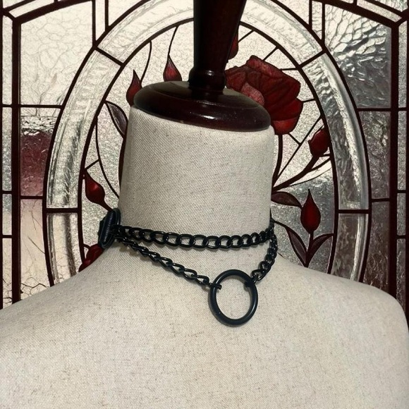 Matte black faux leather choker with chain detail. Measures 15.5” in full and has an adjustable buckle. Brand new! #goth #punk #alternative #grunge #whimsygoth