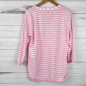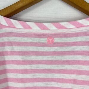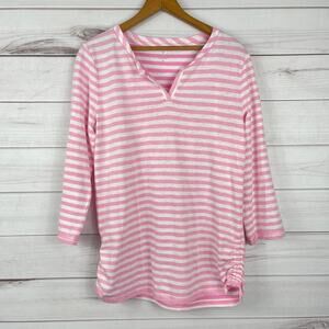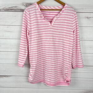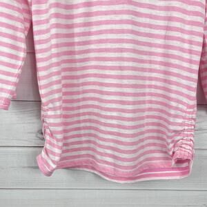 T by Talbots Women's Pink White Striped T-shirt Scrunched Sides Size Medium