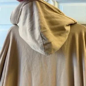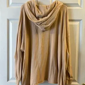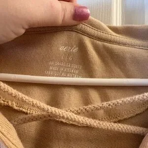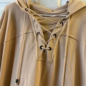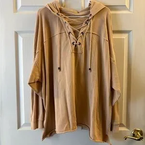 Aerie tan knit hoodie with lace-up V-front. Braided drawstring ties for detail. Soft textured knit fabric. Casual, easy-to-layer style. Lightweight fabric. Oversized fit. In perfect condition. Size large!