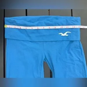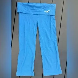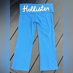 Authentic early-2000s Hollister fold-over yoga capri pants featuring the iconic logo waistband. Soft stretch fabric with a flattering low-rise Y2K fit. Sky blue colorway that’s harder to find than neutral tones.