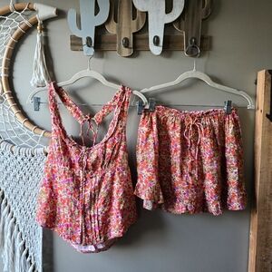"Level up your set collection with this so cool style featuring a button-front, corset-styled tank and coordinating sweet mini skort both in a timeless floral print for the perfect femme finishing touch."