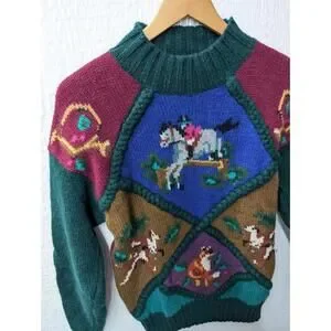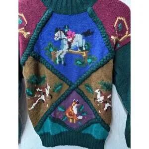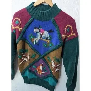 Vintage Sportific Miller’s Equestrian Horse Fox Hunt Wool Sweater Women's Med