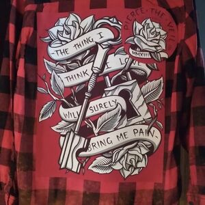 HANDMADE UPCYCLED FLANNEL SHIRT WITH RARE PIERCE THE VEIL BACK PATCH