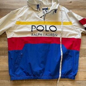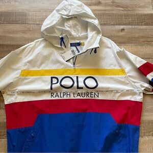 New with tags Polo Ralph Lauren men’s big print preppy windbreaker pullover, size large. Awesome cotton jacket for spring and summer. Preppy and nautical style with big POLO print on the front. Retail $248.