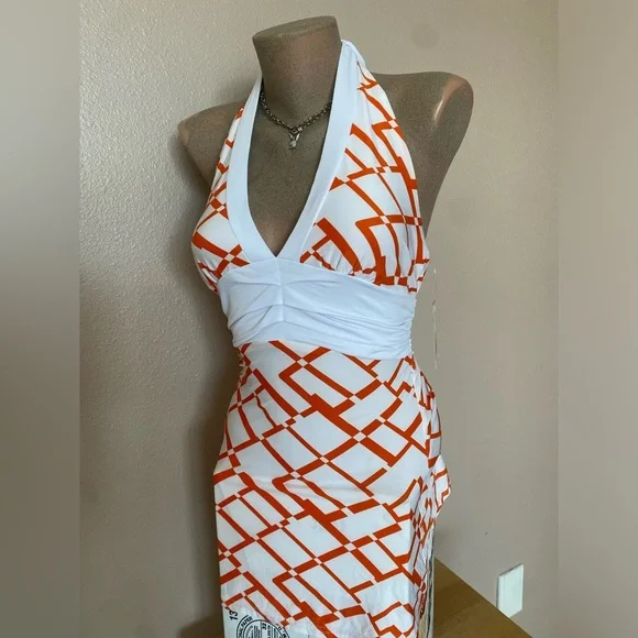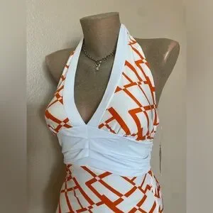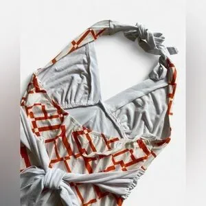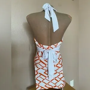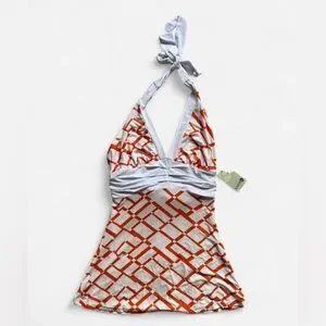 In great condition. New with tags. Tagged a size medium. Pit to pit measures to about 16” flat untied, can fit smaller as the back ties for a more snatched fit. Paper tag, vintage & made in USA. Such pretty colors for summer!!!