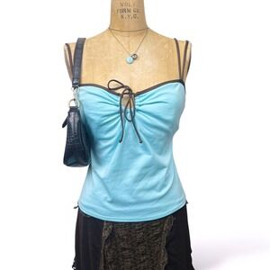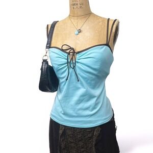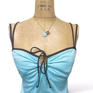 2000's Merona baby blue keyhole neck cami swim top with built in support.