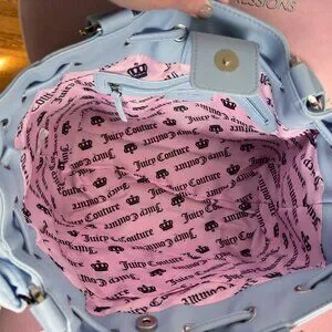 Interior lined with classic pink Juicy Couture logo print