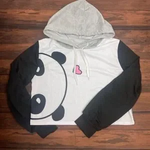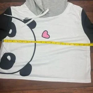 Cute Panda Cropped Pullover Hoodie Lightweight, Excellent Condition Made with 97% Polyester, 3% Spandex Measurements in photos