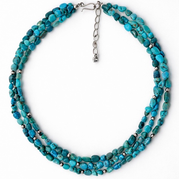 DTR Jay King Turquoise 3 Strand Beaded Necklace Sterling Silver 925